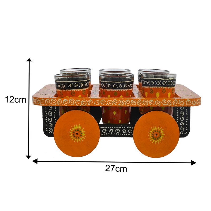 HandPainted Alluminium Tea Kettle with 6 Glasses and Wooden Tray For Home Decor , Tea Party , Serving